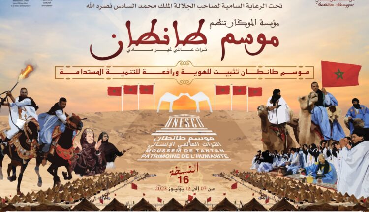 تحت الرعاية السامية لجلالة الملك محمد السادس نصره الله، تنظم مؤسسة ألموكار النسخة السادسة عشر من موسم طانطان خلال الفترة ما بين 07 و12 يوليوز 2023، وذلك تحت شعار “موسم طانطان… تثبيت للهوية ورافعة للتنمية المستدامة”.