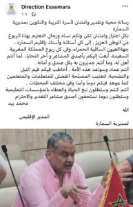 ويبدو أن مديريات وزارة بنموسى، اعترفت بفشلها كون ماكانت تستعين به لم يجدي نفعاً ضد الأستاذ، حيث باشرت صباح اليوم مجموعة من المديريات على صفحتها الرسمية في “الفيسبوك”، بالتدوين ومحاباة الاستاذ، مديرية السمارة أنموذجاً :