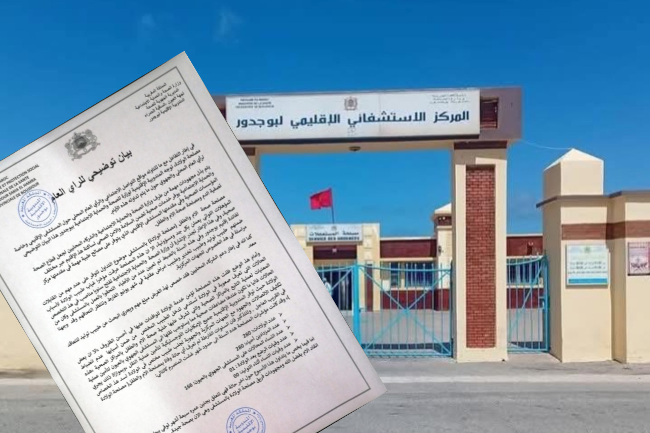 وختم البيان بالتأكيد على أن مصلحة الولادة ببوجدور والمستشفى الإقليمي عموماً يقدمان خدمات صحية في تحسن مستمر، بفضل المجهودات المبذولة على مستوى الموارد البشرية والتجهيزات الطبية.