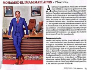ومن ضمن الأسماء التي ذُكرت في عدد “جوت أفريك“، المستثمر الشاب والقنصل الفخري لدولة الكوتدفوار “محمد الإمام ماءالعينين“، نظيرمكانته العملية والخاصة في الأقاليم الجنوبية خاصة مدينتي العيون والداخلة.